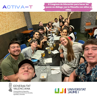 Este año, coincidiendo con el emocionante "II Congreso de Educación para Hacer las Paces en Diálogo con la Filosofía con Niños y Niñas" realizado en la UJI, nuestros participantes tuvieron la oportunidad de conocer a educadores, filósofas y defensores dedicados a fomentar el pensamiento crítico en los más jóvenes. Fue una experiencia enriquecedora en la que aprendimos de destacadas filósofas como la Dra. Johanna Heyns, la Dra. Sofía Herrero, la Dra. Sonia Paris y la Dra. Irene Puig, entre otras.